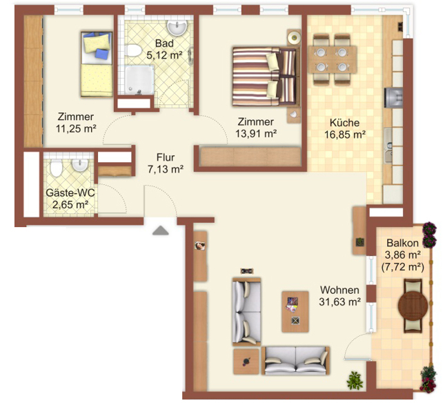 Die Ausstattung und Aufteilung dieser Wohnung passen wir gerne Ihren persönlichen Wünschen an.