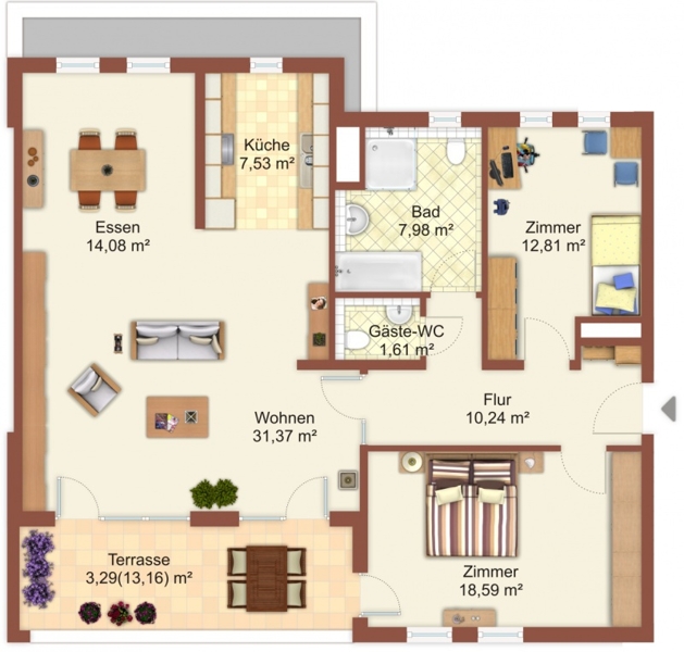 Die Ausstattung und Aufteilung dieser Wohnung passen wir gerne Ihren persönlichen Wünschen an.