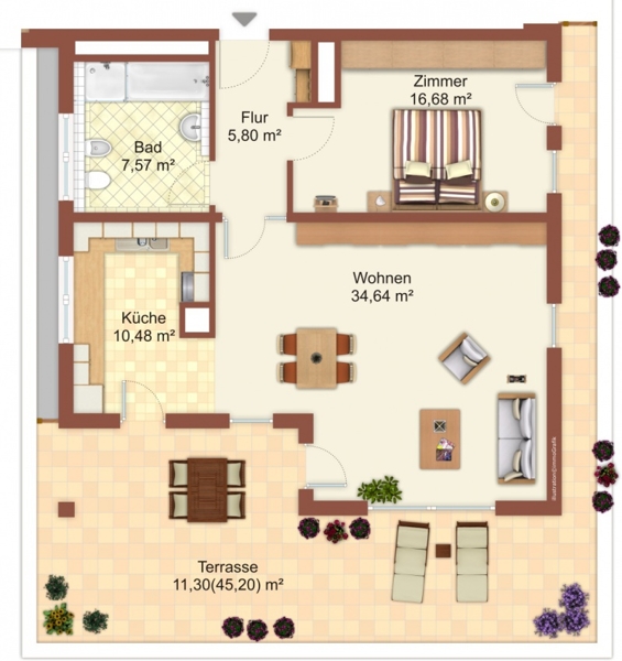Die Ausstattung und Aufteilung dieser Wohnung passen wir gerne Ihren persönlichen Wünschen an.