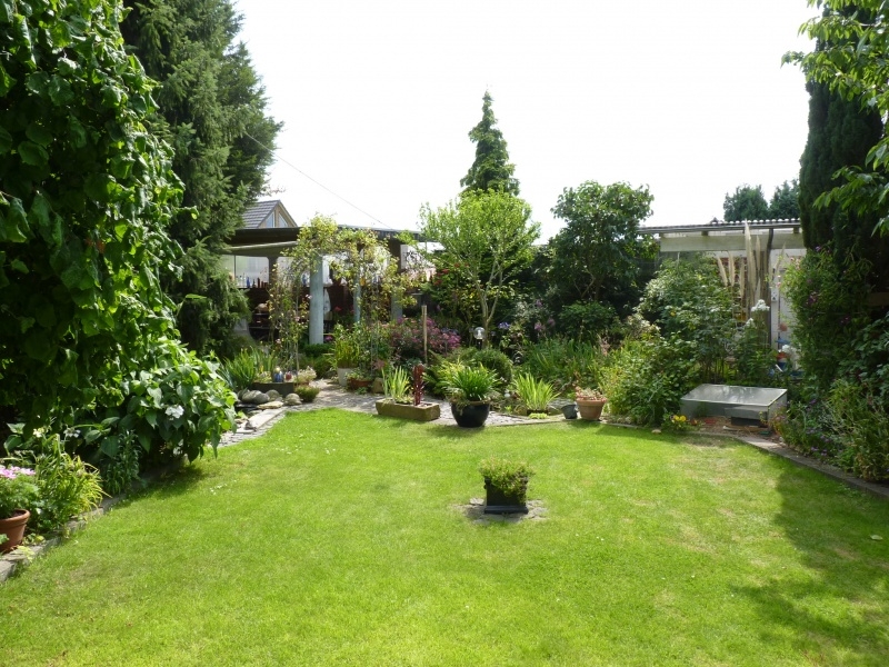 Der schön angelegte Garten in sonniger Süd/Ost-Lage Richtung bietet Ihnen erholsame Stunden im Grünen, auf der Terrasse oder am Pool.