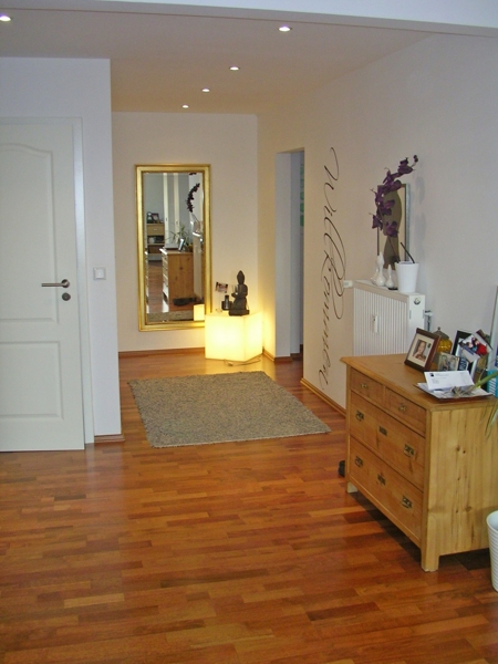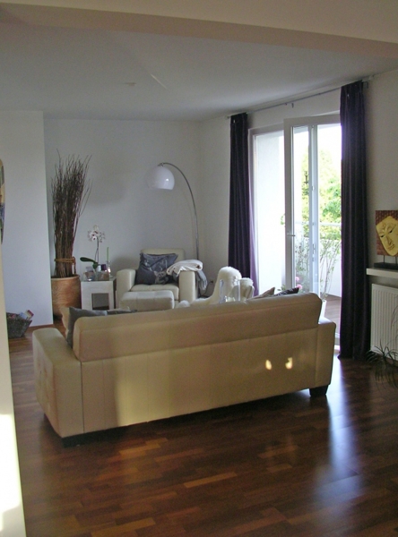 Der Wohnbereich ist mit Parkett ausgelegt.