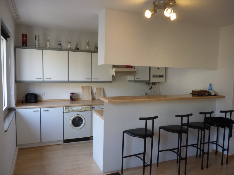 Eine offene Einbauküche ist im Mietpreis schon inklusive und verfügt auch über eine Waschmaschine sowie weitere Elektrogeräte.