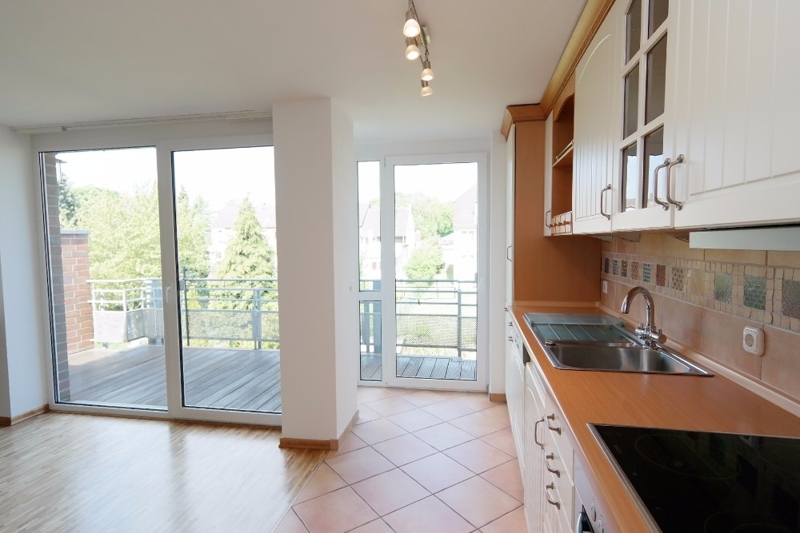 Genießen Sie sonnige Abende auf dem Balkon Ihrer neuen Wohnung.