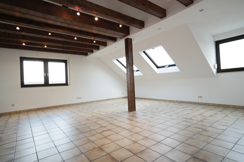 Ein echter Blickfang sind die freigelegten Holzbalken an der Decke und im Rauminneren, die ein besonderes Wohnflair und eine gemütliche Atmosphäre vermitteln. Zwei große Fensterelementen und 2 weitere Dachflächenfenster sorgen für viel Tageslicht.