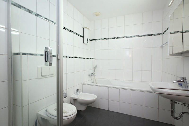 Das moderne Badezimmer verfügt u.a. über Dusche, Badewanne und Bidet.