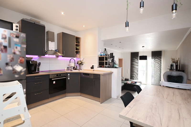 Im Mittelpunkt der Wohnung steht die große und offene Küche mit eigenem Essplatz. So werden gemütliche Kochabende mit Familie oder Freunden zum Erlebnis.