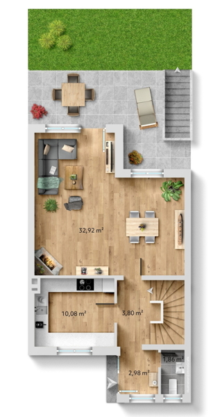 Der kleine Garten bietet ausreichend Platz zum Entspannen, Spielen oder für gesellige Stunden im Freien. Direkt vor dem Haus befindet sich zwei Stellplätze, die bequemes und unkompliziertes Parken ermöglichen.
